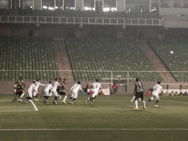 Aos nove minutos, primeira jogada que poderia levar perigo ao gol do América, Lúcio Flávio cobrou falta sofrida por ele mesmo, na barreira. Aos doze, Marcos Serrato chutou de fora da área, para fácil defesa do goleiro. Aos 19' mesmo Marco Serrato fez bela jogada pela esquerda, driblando dois adversários, porém a bola se perdeu na defesa americana. Aos 24', boa jogada do América, Breno tirou para escanteio antes que o cruzamento fosse completado. Aos 32', Tiago Alves, com ótima visão de jogo, chutou do meio de campo, porém para fora. Aos 40', Lucio Flávio foi travado dentro da área, quando ia realizar o chute. No final do primeiro tempo, o América pressionou, mas parou na defesa do goleiro Marcos.